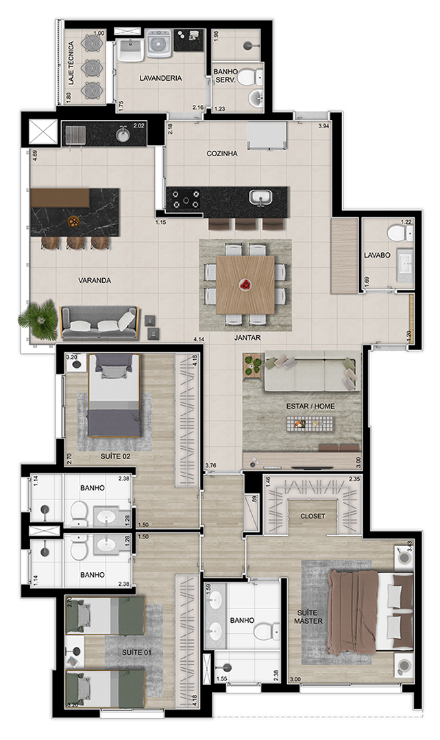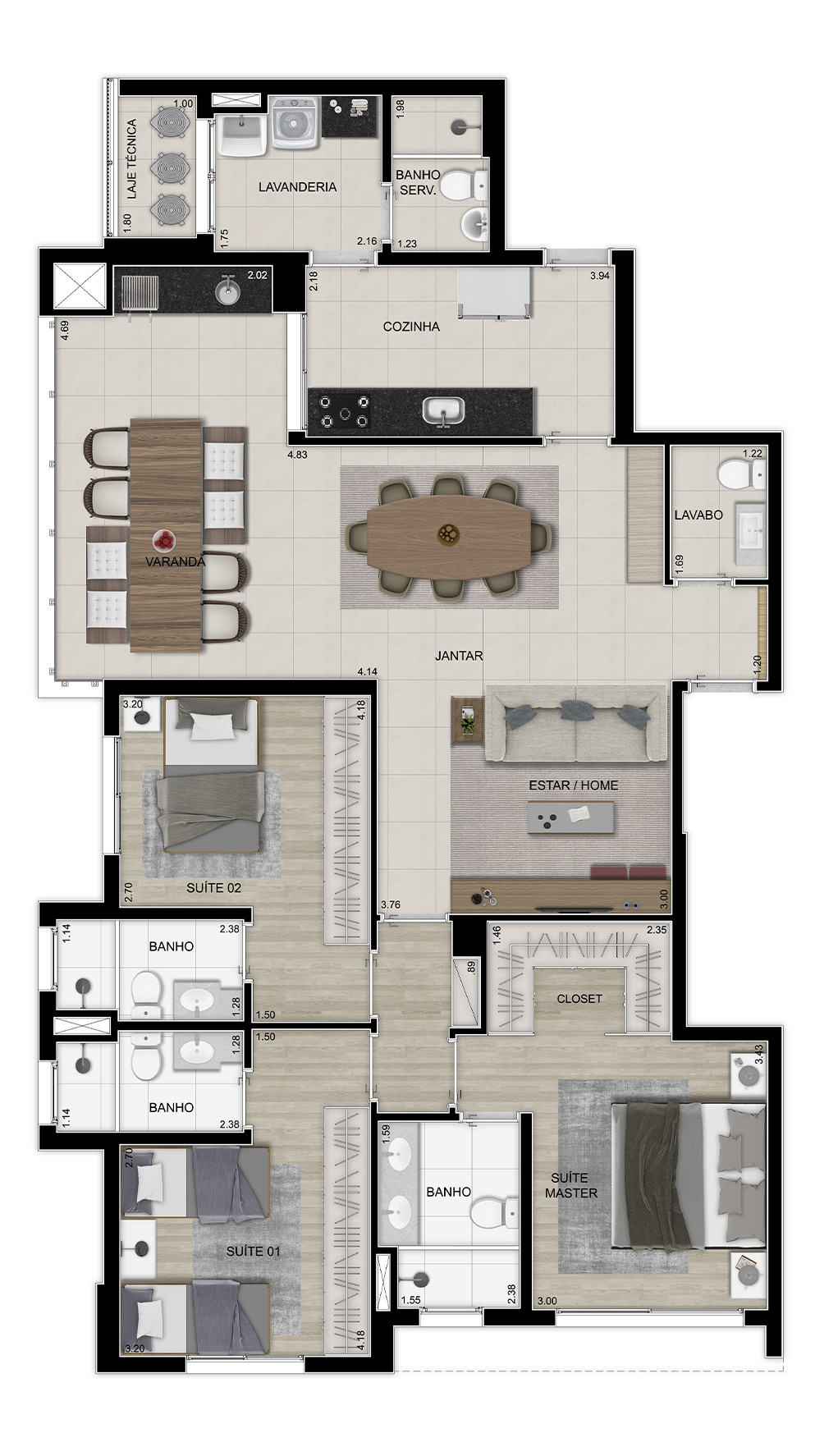 3 suítes